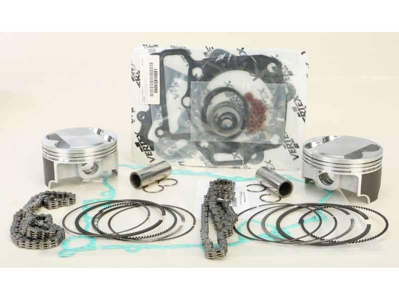 - Top end piston kit includes piston, rings, pins, circlips, top end gaskets, and wrist pin bearing or cam chain where applicable.